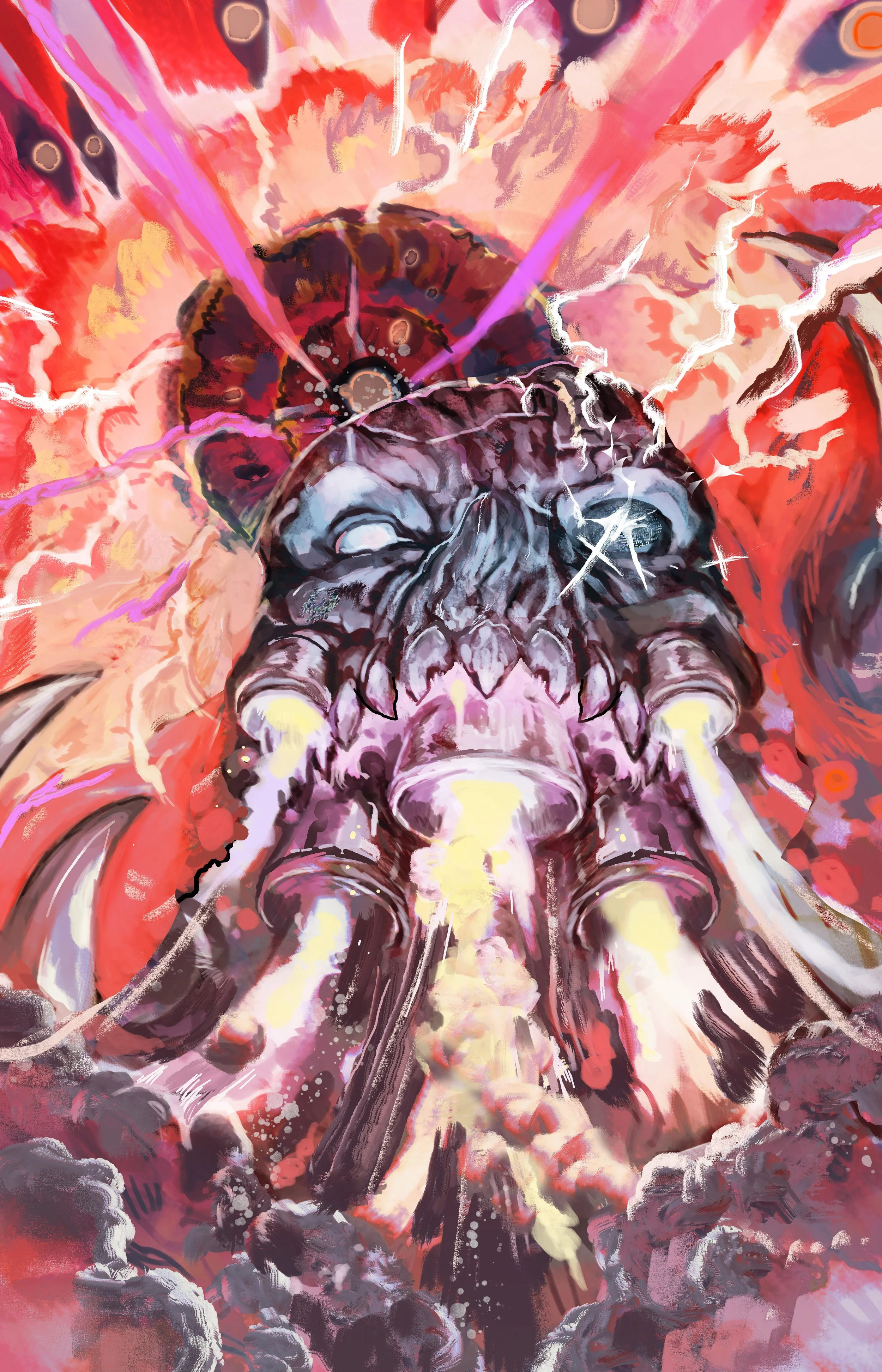 Symphony of Madness is the fourth and final volume of Kodoja, and can be enjoyed as a standalone graphic novel or as the finale of the Kodoja series! In this volume, giant monsters continue to surface and overwhelm the earth as the disembodied pieces of Kodoja, once thought destroyed, reappear to fight the monsters! This is mega-kaiju action at its finest; a story SO MASSIVE it took three interior artists to capture the giant monster destruction!